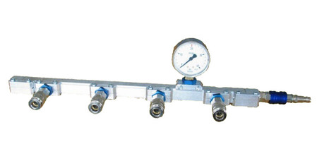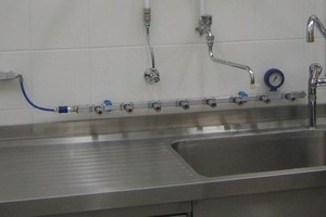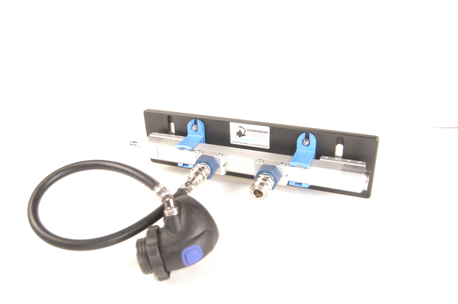 Um dies auf einfache Art und Weise zu ermöglichen, kann der Arbeitsplatz zur Reinigung und Desinfektion von Lungenautomaten mit einer Mitteldruck-Verteilerschiene ausgerüstet werden.