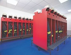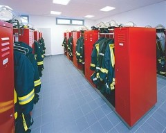 Spinde zur einfachen und schnellen Entnahme von Einsatzkleidung und Ausrüstungsgegen-ständen.